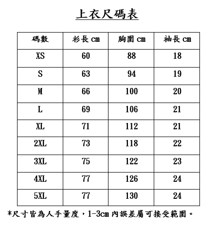 按此下載尺寸表 (選擇後,不設更改)