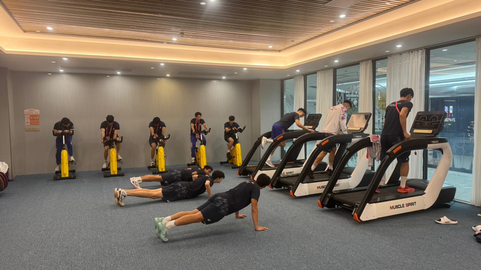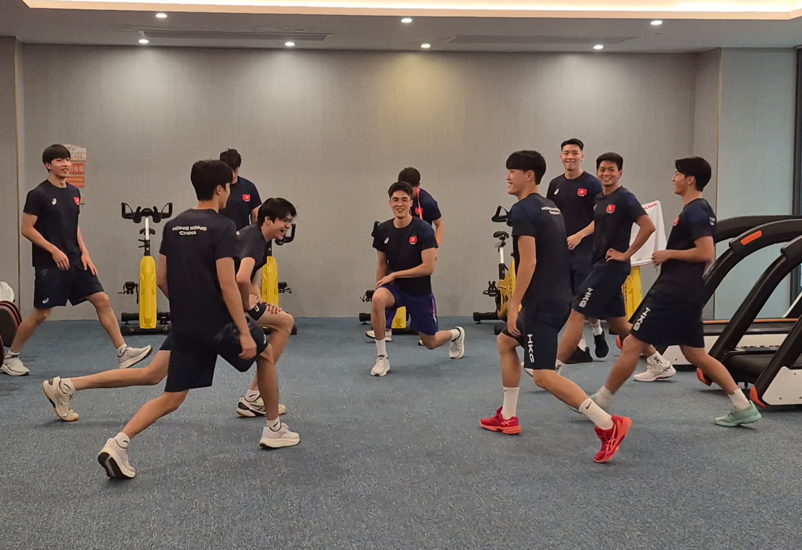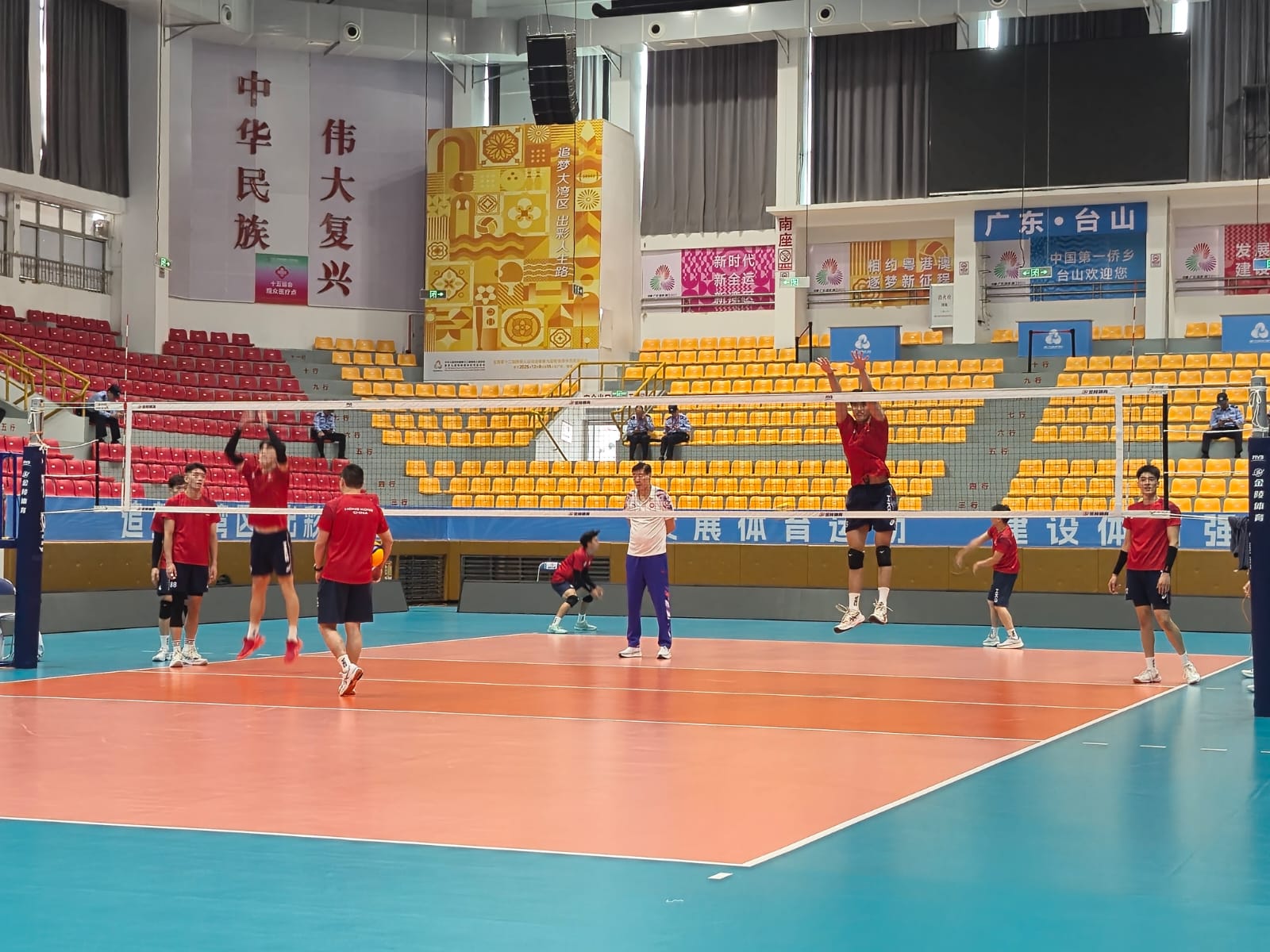 圖片二:香港男子成年排球代表隊抵達台山後,隨即訓練備戰。