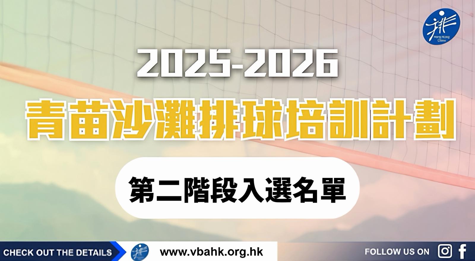 2025-2026 青苗沙灘排球培訓計劃 - 第二階段入選名單